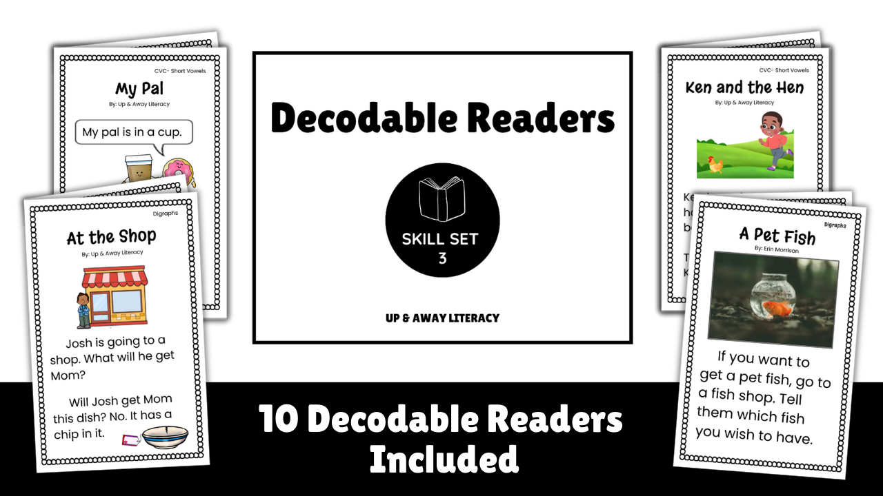 Decodable readers, games, and hands-on manipulatives to boost the literacy skills of your developing readers! Unsure which skills your child needs to work on? Download and use our FREE Skill Set Assessment for Families by clicking the button below.