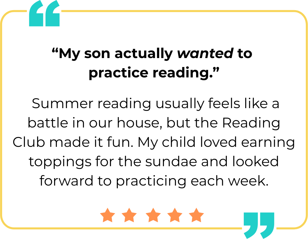 At the end of the summer, we’ll celebrate all their hard work with a Reading Club Ice Cream Sundae Celebration, where students can build their sundaes using the toppings they earned throughout the summer.